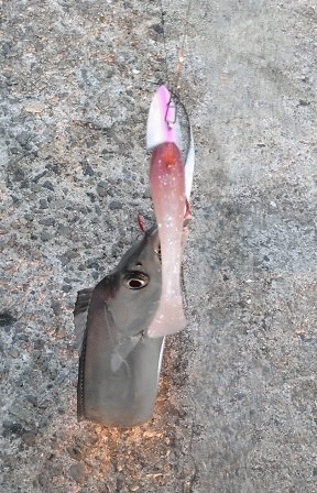 中層から下を意識してゆっくりシャクって同サイズの2匹目、その後続けて90㎝をキープもその後サイズは伸びず。