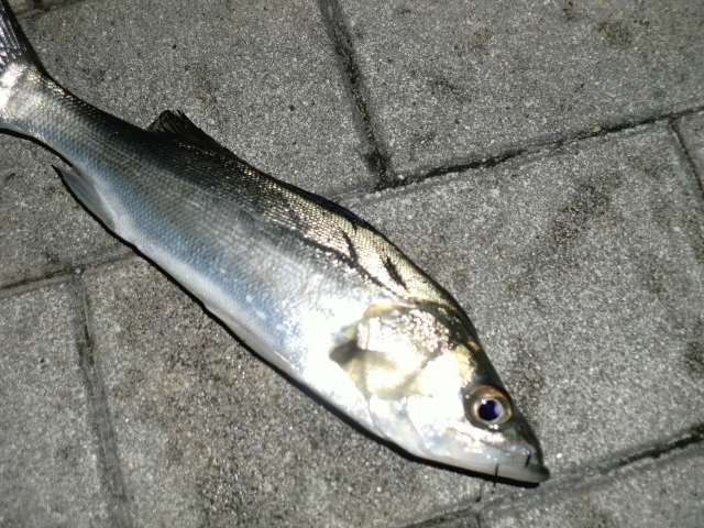 8時前になってようやく風も収まりやりやすくなった頃やっとヒット。続けてヒットしたらあまり引かないので小さいのかと思ったら水面で「プルプル」とする「???」正体は25センチのシーバスでした(笑)これからの大阪港は水温の低下で一時釣れなくなる時期なんでしばらくはかなり苦戦しそうです・・・。