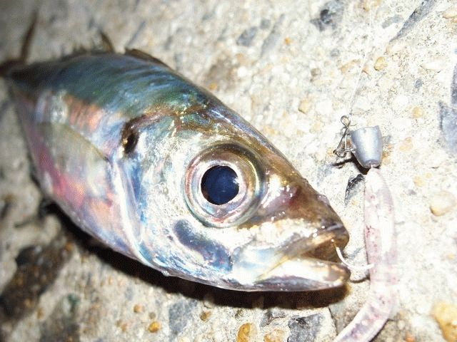 さい先良くゲットしたのは15cm程度のかわいいアジ。
