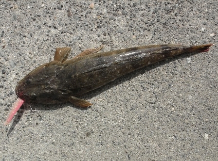 ようやく雨が上がったので、西風が吹き出す前にちょこっと浜名湖へ行ってみました。 今日は陸っぱりでのマゴチ狙い。 ここは以前キス釣りをしていて、釣れたキスに喰いついたマゴチをキャッチした事があるポイントです。 でも連休で釣り人が多く、入りたいポイントに入れず苦戦・・・。 それでも空いたスペースで、キャスト&シャクリを繰り返して粘っていると、ゴンとHIT! しか~し、直ぐにフックオフ・・・。 西風が吹き出し、今日はダメか?と止めようと思った最後の一投でググンとHIT! やり取りを楽しんで50cm程の良型マゴチをキャッチしました。 笹濁りの水色でしたが、ピンク系のカラーが効いたのかな?