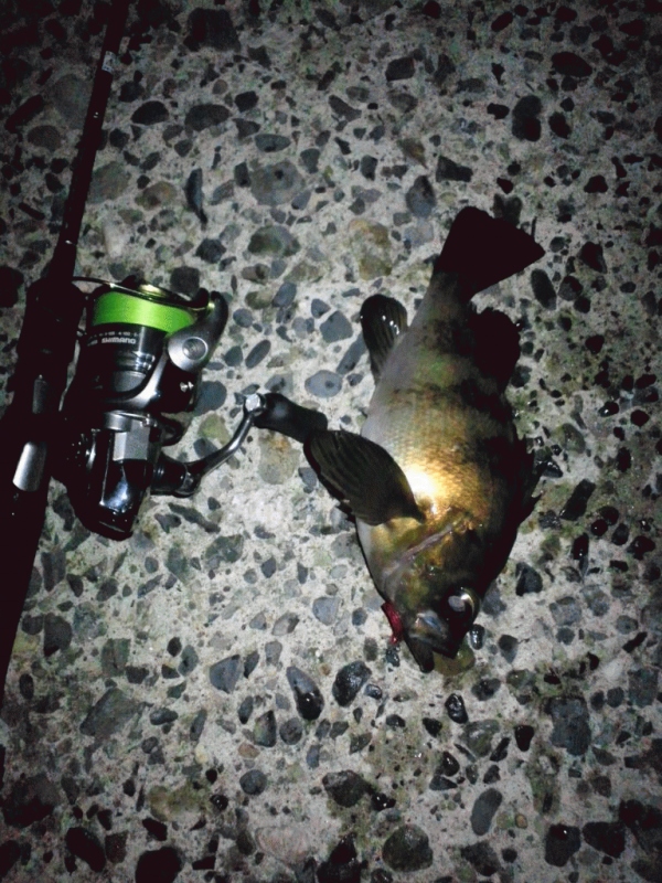 そして9時頃師匠と合流。海を照らせば良型の味が右へ左へ…。なぜ釣れないの(・д・)?訳も分からず時たまくるプルッてくるメバルのあたりで血圧を下げる(´д`)