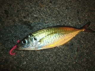 続けて同じように沖目の底を狙って25.5cmのアジをヒット!