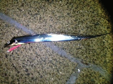 アタリが無いのでカラーチェンジをし、最近好調のピンクグリッターで“グン”というアタリが来ました!あたってからもシャクリを維持しましたが乗らず。見事歯型だけが付いていたので、もう一度同じポイントで同じ水深でトライし、フォール時間を長めにしたところ“モゾモゾ”という魚信が来たので電撃合わせ!