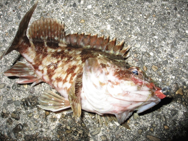 エソ?のようなぬるっとした根魚が2匹つれたので、