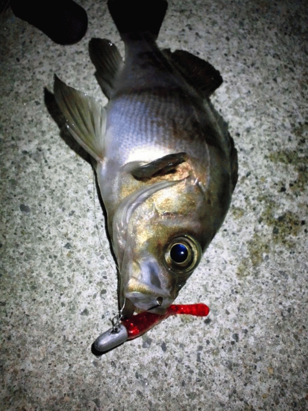 最初マナティ38が好調とのことで何とか入手したレッドで攻めてみたが今一。動かし方もピンとこない(-.-;)そこでまずは潮の流れを掴む感覚を戻すためにマゴバチに変更。釣れない(>.<)けど潮とのひさしぶりのコンタクトはワクワクします(〃'▽'〃)なれてきたところで師匠が38をしていたので私も再チャレンジ。師匠を見ながら浦さんを思い出しながら…釣れた( ´艸`)けど潮が巻いているのとスラッグ出しすぎのせいかアタリがわからなかった(´・ω・`)何回も繰り返していたら感覚を掴めてアタリがとれるようになり、…コッ! ジィー!!マナティ丸飲みの深いフッキング!!