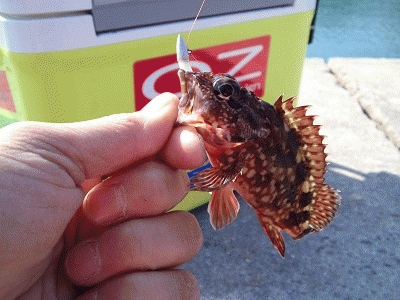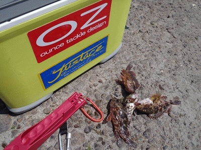 久しぶりの連休にと友人と二人で和歌山にガシラ釣りに出かけました。ここ数日風もなく穏やかな天気が続いていたので楽しみに友人の知っているポイントへ釣行。幸いなことに連休にも関わらず釣り場はほぼ無人状態。潮は完全に引いていて敷石がかなり露出している状態。ふと釣れないから誰もいないのかなっと?そんなこと考えている時間はありません。潮が満ちてくればこの場所は完全に水没するのですぐさま用意し、干上がっている敷石の上からジグヘッド0.9gにマゴバチMB-01パールホワイトを装着してキャスト。隣でいきなり友人が掛けているではないか。ショック。何度か私もキャストし底をとってから少しトゥイッチングをいれるとコツッとアタリがでました。すかさず合わせると小型ながらやっとこさガシラ登場です。たまに写真のようなベラも釣れてきますが、飽きることなくアタリがでてあっという間の3時間でした。結局友人と二人で20尾くらいは釣りましたがキープサイズ4尾以外はリリースとし納竿としました。まさに快勝のガシラゲームを満喫できました。マゴバチの柔らかさがいいのかアタリがでてアワせると確実にヒットします。頼もしいワームでしいた。次回からはいろいろなカラーにも挑戦したいです。