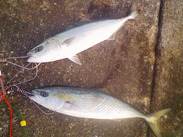 ここ数日、青物がいい感じに釣れています。本命はアジなのですが、青物が来ているせいか釣れません。そろそろ水温も上がってきて、ワインドが効くかなと思い、やってみると、ガツン!!と一発ヒット!それから、ほぼ連続ヒットで3匹ゲット。2匹キープして、1匹はリリースしました。