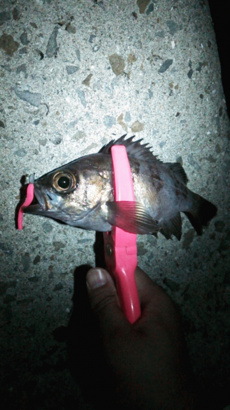 港内は、反応なく外向きに向かいます。冬場は、メバルも釣れていたし夏場はアジも良く連れている場所です。水面が、少しざわついている感じがして水面直下を通すとアジでは無いような当たりがありますが乗りません。数投同じコースを通すと啄むような当たりから力強く引いていきます。上げてみると本日最大の20㎝メバルでした。カラーは、バブルガムピンク。