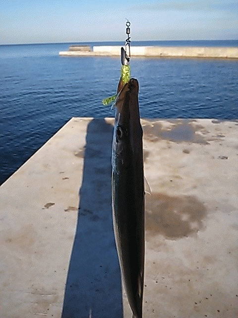 隣で、仲間がやっているサビキに、カマスが釣れ始めたんで、