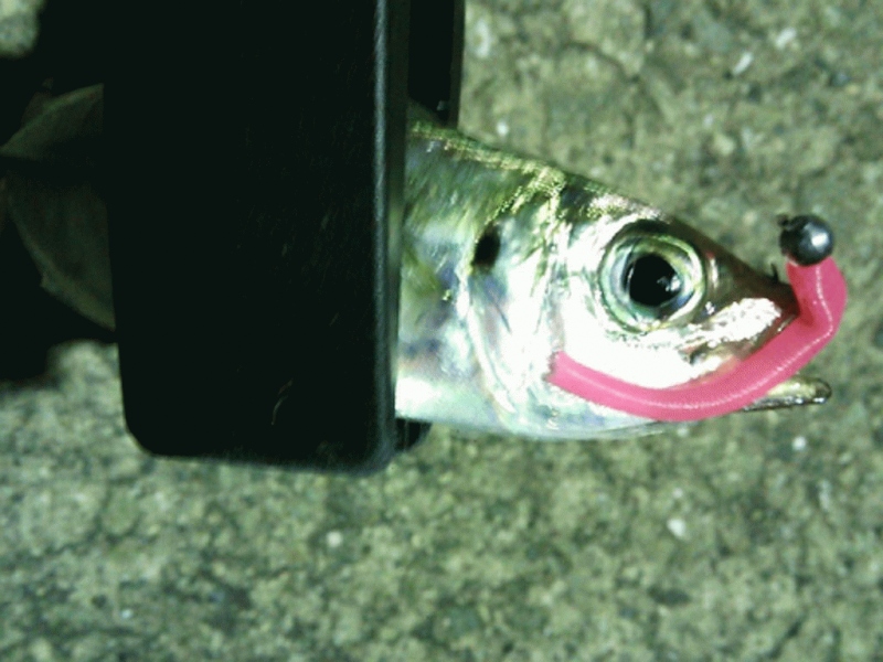 ここは灯りのあるポイント、0.6g+JHマゴバチを潮流に漂わせるといきなり好反応、豆サイズが連発ヒット。