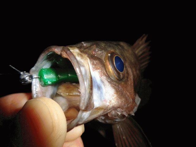 更に延長して潮止まりの間、散発ライズのある表層引きで2.1inchソフトでは18cmサイズがヒット。
