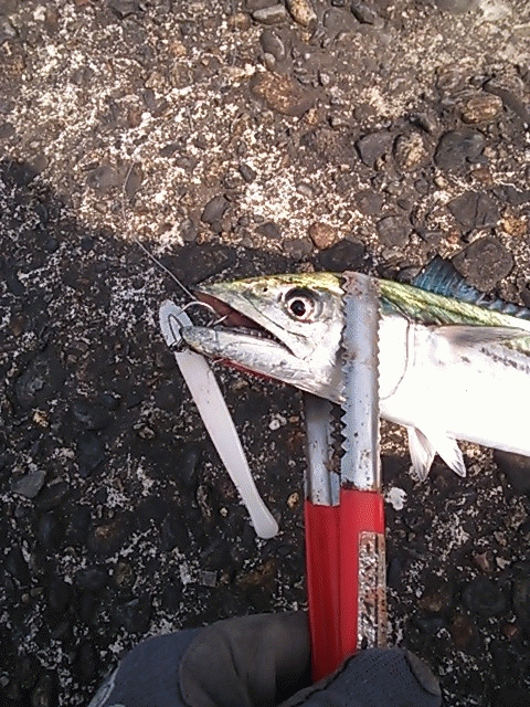 サゴシ定番の01からセットして、一投目、大きくシャクリアピールをしていると、数シャクリでスカッ!いきなりのラインブレイク(><)