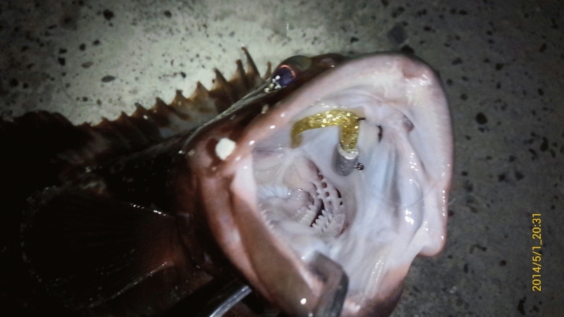 アコウであると確信し、慎重によせてタモでランディング。