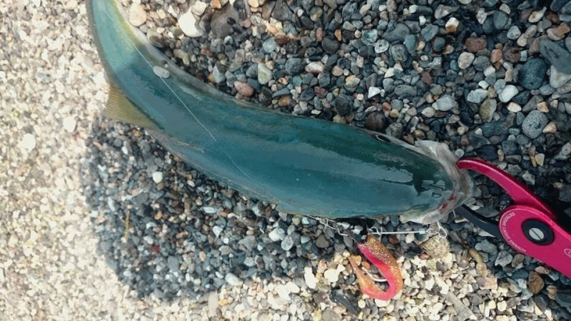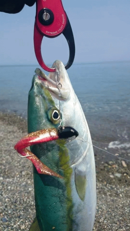 糸魚川サーフでのイナダ狙い。ジグへの反応がショートバイトで全く乗らず、ヘビーシンキングミノーにも啄むようなバイト。そこで、フラット用に常備しているジグヘッド+ミノーでボトムを切るイメージでスローリトリーブすると、嘘の様に大連発!!速いアクションになりがちなショアジギングですが、新たな攻略パターン発見で自分の引き出しが増えました。