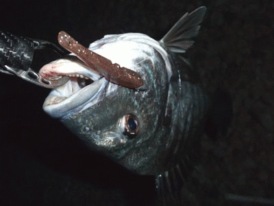 そこで砲弾型のジグヘッド5gにやはりマナティー75アカハゼを付けてボトムワインドをしていると、フォール中に良いバイトが!