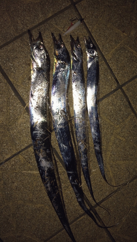 (写真の右から3匹は友人がヒットさせたタチウオです!)