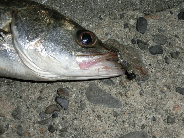 慎重にやり取りしてシーバス35cmをキャッチ。