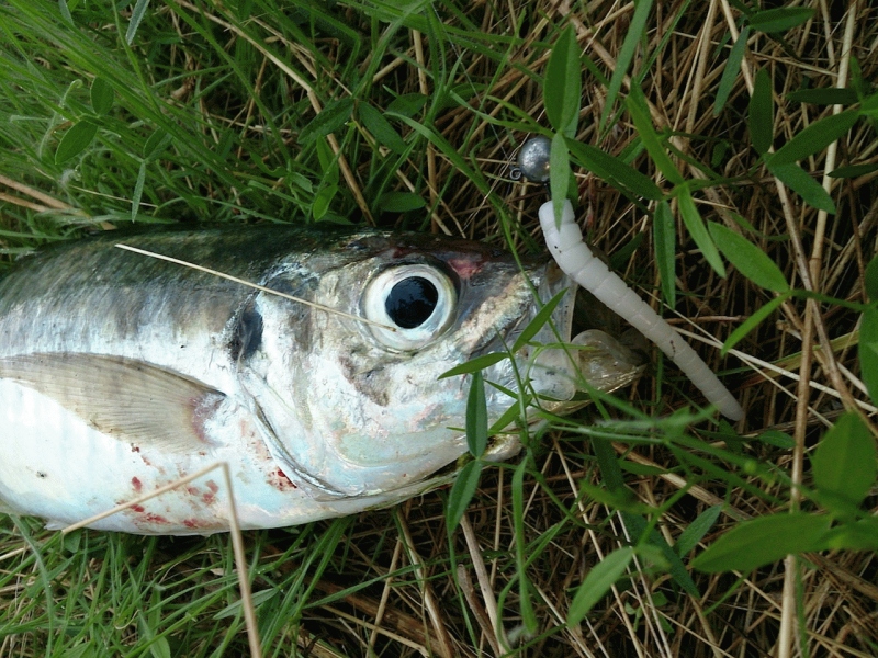 カッティングベイト2インチでショートバイトを得ましたがノリが悪く、マゴバチにチェンジ。