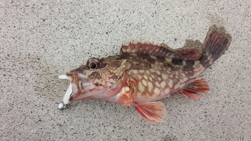 大きくは無いですが、しっかりとした引きを楽しんで抜き上げると、カサゴでした。