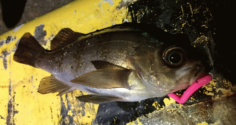2投目で同じレンジを通すと16cmのメバルがヒット。