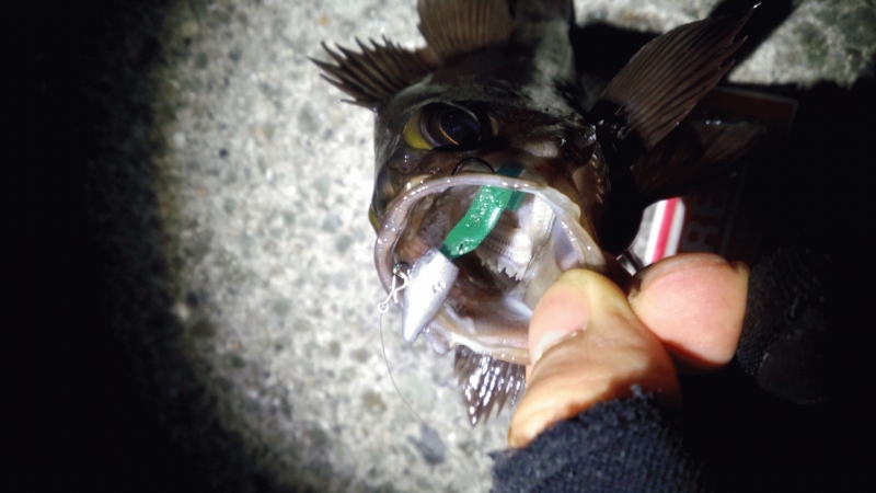 薄暗くなり、小メバルが表層を元気に泳ぎ回ってます。