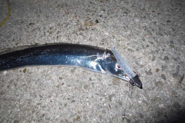今シーズン待ちに待ったタチウオ調査の為淡路島に釣行しました。少し風はあるものの曇り空で月明かりはなし!雰囲気は上々です。ZZ-HEAD1/2にTK-02で探っていくと午前3時半頃から少しずつアタリを確認するも乗らず。そしてTK-08にカラーチェンジした直後、ファーストヒットで今シーズン初をゲット!その後MT-WK3にチェンジ後1本追加しましたが、今日の時合いはわずか10分!2本で終了となりました。大阪、神戸とは明らかに違う淡路のクリアウォーターですが、カラーチョイスを間違わなければ確実に釣果を出してくれるマナティー、匠魚!今シーズンも頼りにしてます。