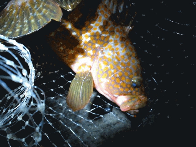 トルクフルな引きのゲストをネットインすると、今回は尺キジハタでした。