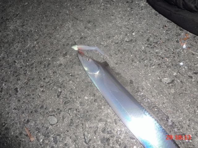 混雑を避け、ムコイチ7番へ。午後3時ごろ、去年の限定のピンクのマナティでサゴシがヒット。スレガカリで何とか寄せるもフックアウト、それから、ワイヤーを巻かれるような当たりがあるも、掛からず、午後6時過ぎにようやくヒット、90弱のまあいいサイズ、ワインドシャッド75、K2、ZZヘッド2分の1オンス、赤ケミチューンでした。続けて同色でヒット、当たり自体はいいものの、沖でかからないので、レッドヘッドにチェンジ、すると、着水してフォール中に当たりが、色を合わすことが出来たとよろこんで、フッキングしたら、60センチぐらいのタチウオ、15分くらいで時合終了、当たりじたいはガツンと来たので、楽しめました。