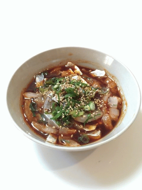 帰宅してすぐに新鮮なタチウオユッケでいただきました。