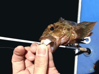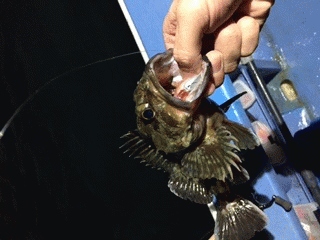 これは凄いとボトムを探りすぎいきなり根掛かり(汗)急いでリダーから付け替え再びスタートするといきなりボトムをとって一しゃくり後に当たりがしかし、かからず。それが続きケイムラからMT01に変えるとすぐにヒット!その後ポツポツと当たりがあり、それと同じくポツポツと根掛かりを繰り返し、日が暮れついに時合い突入です。一投ごとに当たりが出ます。この時こそ色々とカラーを試す時と変えますがどうもケイムラとナチュラルカラーには反応が悪い日だと感じました。その後も順調に釣れ続け、この日一番の大物がMT02に変えた一投目でした推定25cm以上(抱卵でリリースした為)立派なガシラでした~。