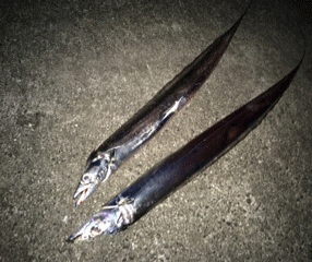 タチウオの密度は薄いと判断してアピール重視の105サイズ、カラーはゴースト系のMT21を選択してフルキャスト、カーブフォールでボトムを取ってからレンジをろうかとしていると….ティップを引っ手繰るようなバイトを渾身のアワセでヒット♪