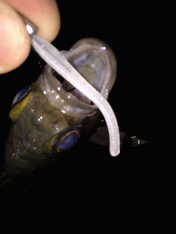 と、マゴバチのグローを外灯で蓄光し、上流にキャストしてドリフト。
