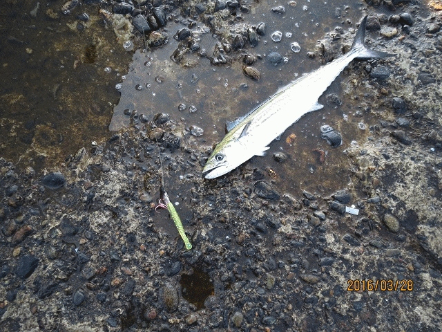回収間際に目の前で尻尾を「カプッ」と噛まれ、「きっと何かが違うんだろうなぁ」と思い86のK21にチェンジ、あまりバシバシしゃくらずにフォールを長めに取ってようやくヒット!!なんとか坊主回避!