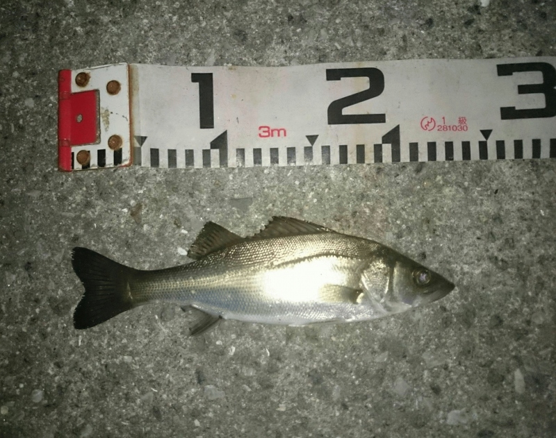表層は浮遊物が多いせいか反応悪かったのですが、50cm程下をゆっくりと引いてやると小型のシーバスが連発!