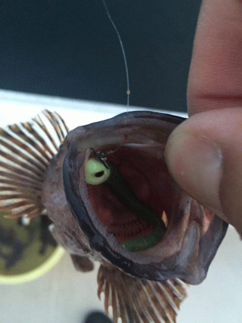 3.5gのジグとマナティ38 スペシャルグリーン丸飲みです!