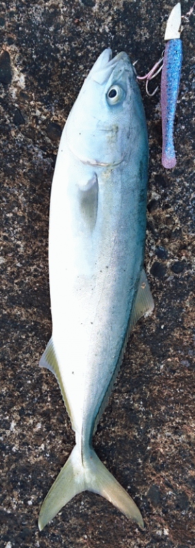 現着は4時前、うっすら明るく風もなく海は凪。そして目の前にナブラ!早速、ピンテールMT-K1を投入!一投目…反応がない。2投目ヒット!幸先よくサゴシをGET!シラスを食っているのか後が続かず…。ナブラが遠くなったのでZZ-STAPブルピンを投入。届いているのにバイトしない…。しかし数投でヒット!!サゴシGET!!