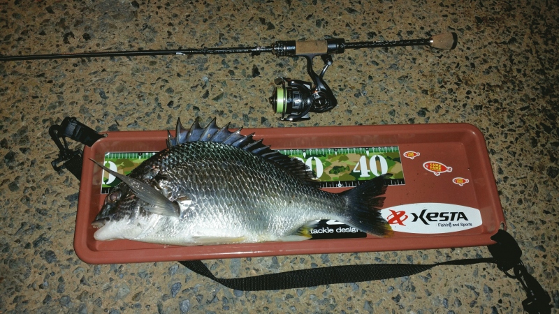 引いては行かせ、止まったら巻いて浮いてきても抵抗力のある元気なキビレGET。