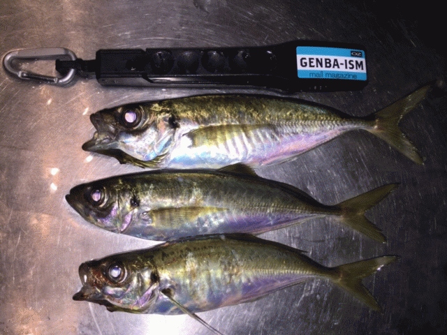 ので、見に行くと良型のアジ、尺はあった感じ。