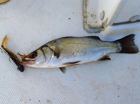 やり取りを楽しんで、30cm程のヒラセイゴをキャッチしました。