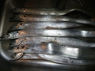 日が沈みかけた頃、マナティーK3で小さいバイトがありタチウオを確認。