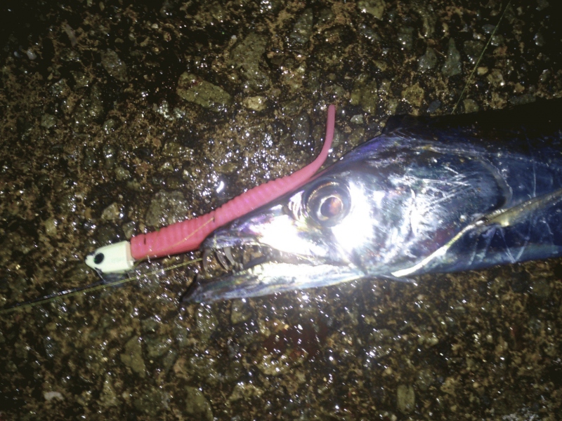 下げ潮の表層付近を流しながらアクションさせると『ギュイーン』と穂先が持っていかれるアタリ。同アクションで数本ゲット。