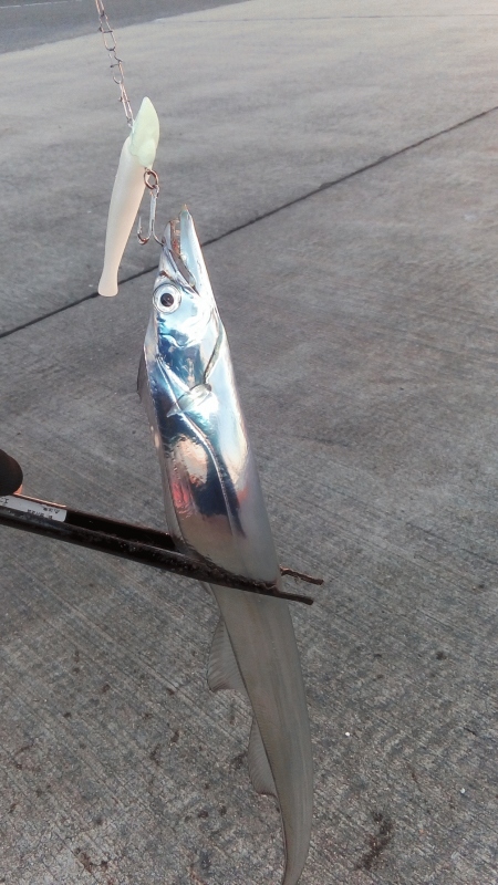 結構引きましたので大物かと期待しましたが普通のサイズで元気なタチウオをまずは1匹ゲット。