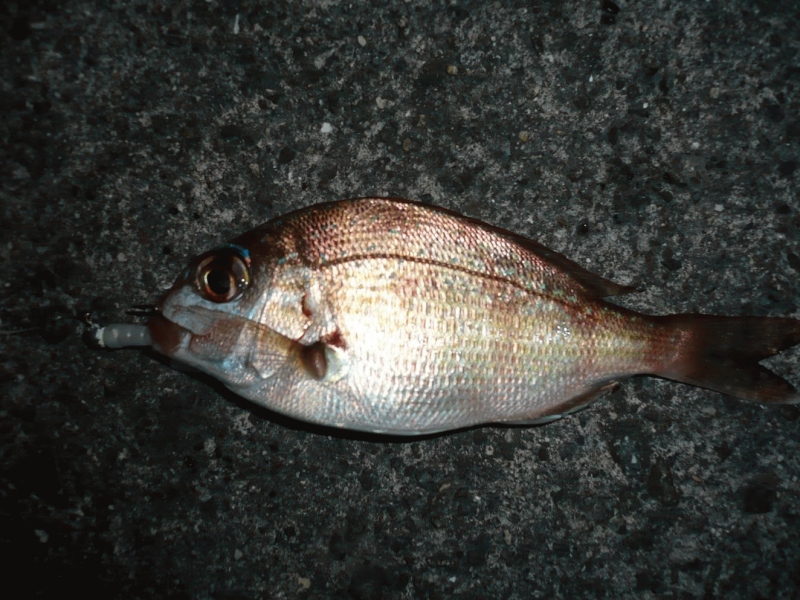 2投目に1匹目をゲットできました。そのすぐ後にもう1匹追加。その後しばらく沈黙が続き久々の当たり、引き上げてみるとガシラとは違うシルエット、アジかと思いましたが。ライトを当ててみるとチャリコでした。その後2匹ガシラを追加して終了としました。ガシラ2匹とチャリコは小さかったのでリリースしました。