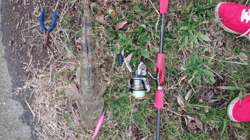 そして時間が過ぎ潮も満潮になりかけの時間にシャクリの後のフォールでゴゴっと何か触る感じが!最後のチャンスだと思いすかさずフッキングを入れるとヒット!