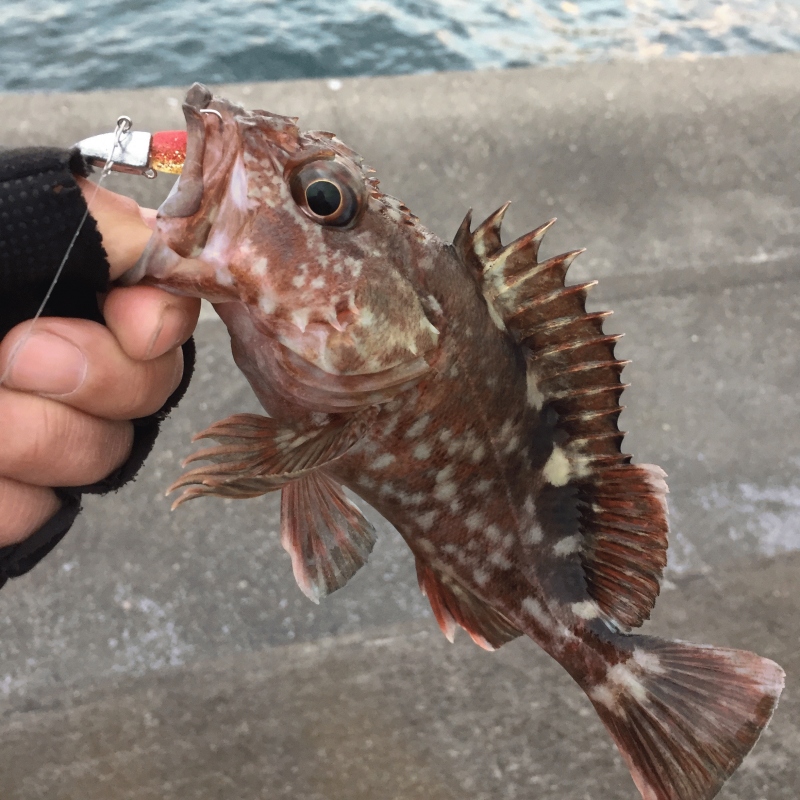 神戸沖堤に行って来ました。乗り場付近で雑談していると今日はオンスタックルの大会か講習会なの?という位見慣れた方々が続々と集結。皆さんドラゴン狙いに来られているようです。ですが、今回は、ロックフィッシュのみで挑みます。結果から言ってしまうと大本命には出逢えませんでしたが、新たな発見もあり良い釣行に成りました。まずは、ライトワインドで手堅く探っていき、カサゴを数匹。それからボトムワインドに変更。風が強いとか、潮が速い時などにボトムが取りにくい時には効果有りで、数匹追加します。抱卵していたものはリリースし、持ち帰り分だけ確保しました。