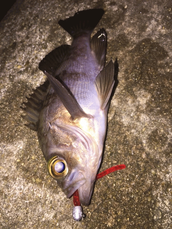 表層から徐々にレンジを下げてリフト&フォールしていくと中層でバイトが連発。サイズが小さいのかフッキングに苦労するハメに。