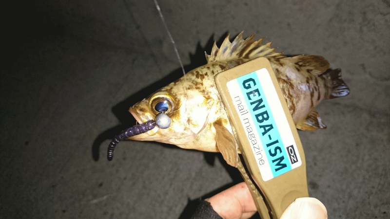 やがて潮が緩み始めたタイミングでルアーをボトム着底後、しばらくステイさせておくと「コンッ」とかすかな違和感。