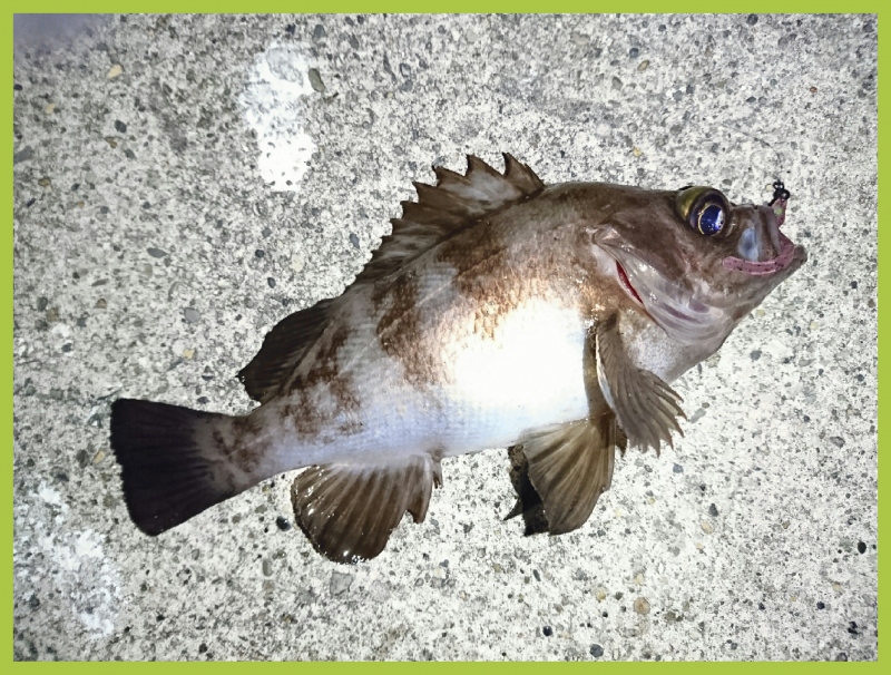 魚が小さいさくてヒットしないのかと思い、ナチュラルに誘うマゴバチをキャストしたらメバルがヒット。