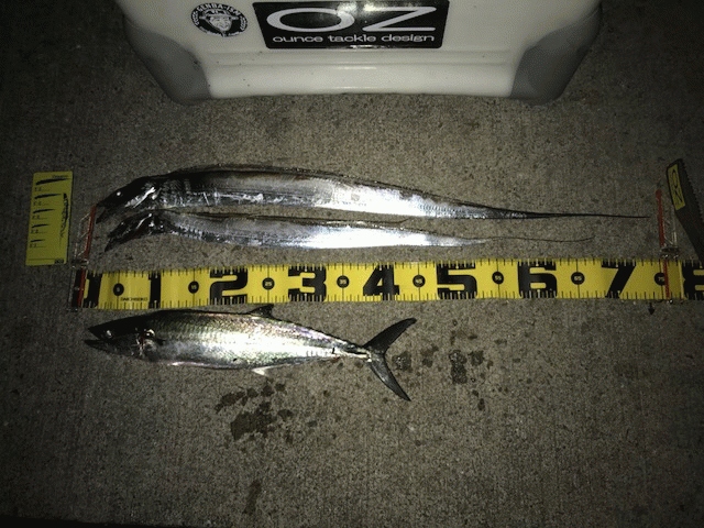 またまた和歌山に遠征して来ました。今日は和歌山の有名ワインダーさんとご一緒させて頂きました。釣れ出しは17:45気持ちの良いカウンターバイトで良く引きます。…が揚がって来たのは45cmのサゴシでした。その後、時合突入!次も気持ち良くシャクっていると「ガツン!」とヒット。
