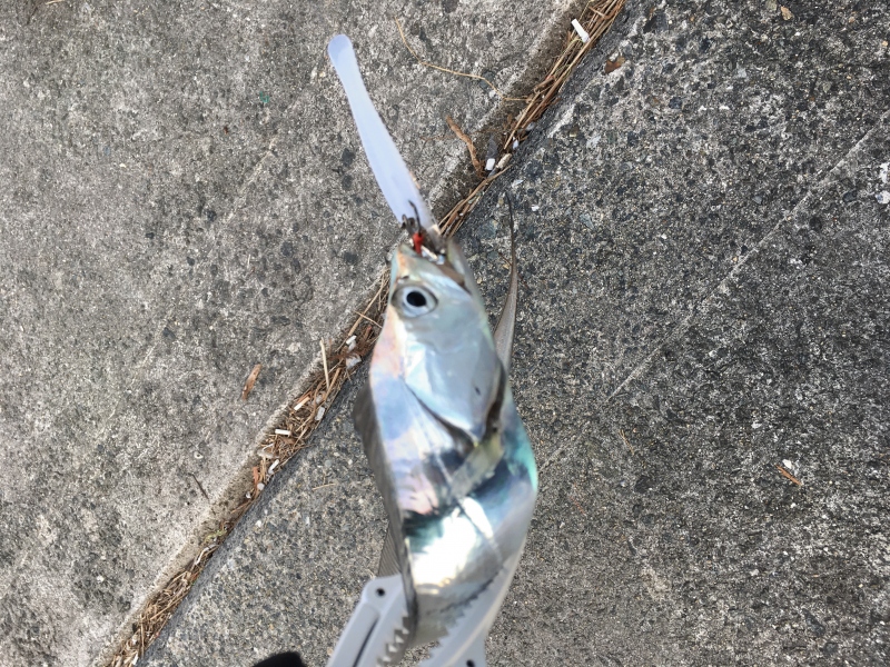 ZZヘッドを重くし、マナティー限定カラーをリグって中層付近で軽くシャクっているとショートバイトが(≧∀≦)しゃくりからのリトリーブを長めにするとドンッとHITです!その後、FLAPに変えて強めのアクションで1匹追加です^_^最後にドラゴンハントをキャスト!しゃくっているとショートバイトが!あかん!かからん!背中噛まれてます(≧∀≦)ワイヤーもボコボコになってるし。。。ドラゴンGETならず、時間が来たのでストップフィッシングです^_^